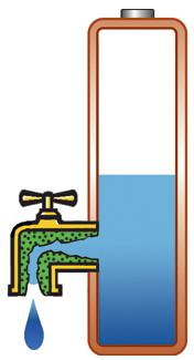 ![]() | ![]() | Figure 1: Effects of internal battery resistance. A battery with low internal resistance delivers high current on demand. High resistance causes the battery to heat up and the voltage to drop. The equipment cuts off, leaving energy behind. |